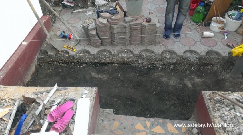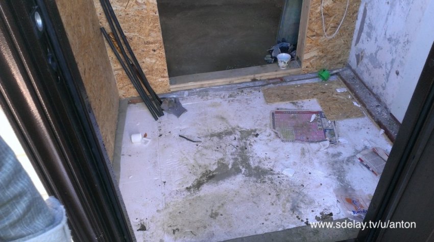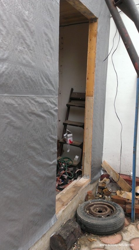Изначально был неотапливаемый коридорчик / тамбур, который мы разобрали для последующей достройки.
