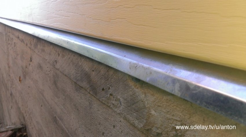 Снизу на границе сайдинга и фундамента установили вот такой металлический отлив
