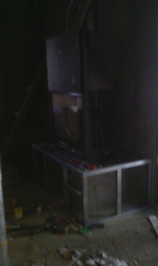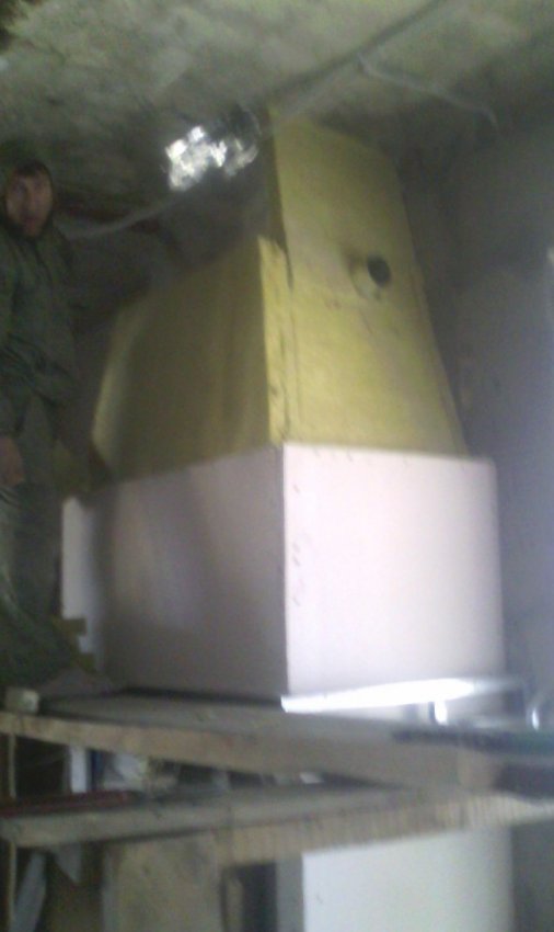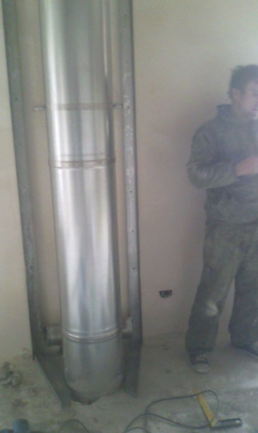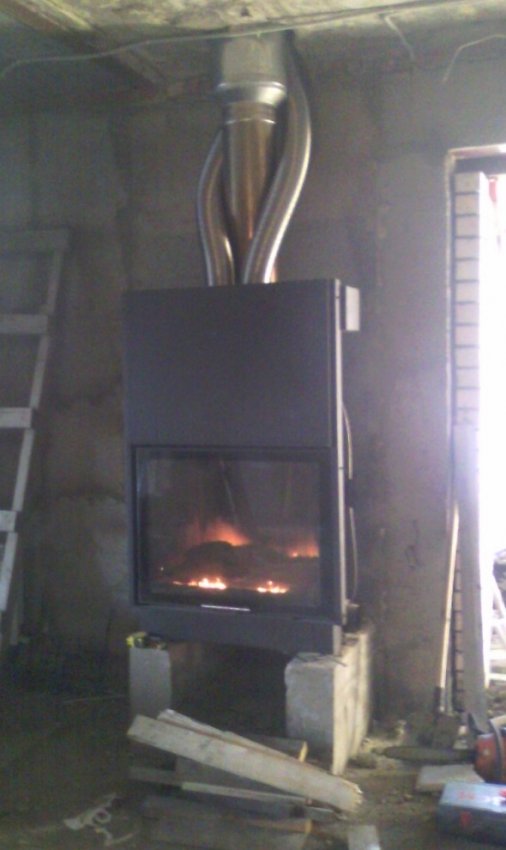 Устанавливаем топку,дымоход и стальной воздуховод