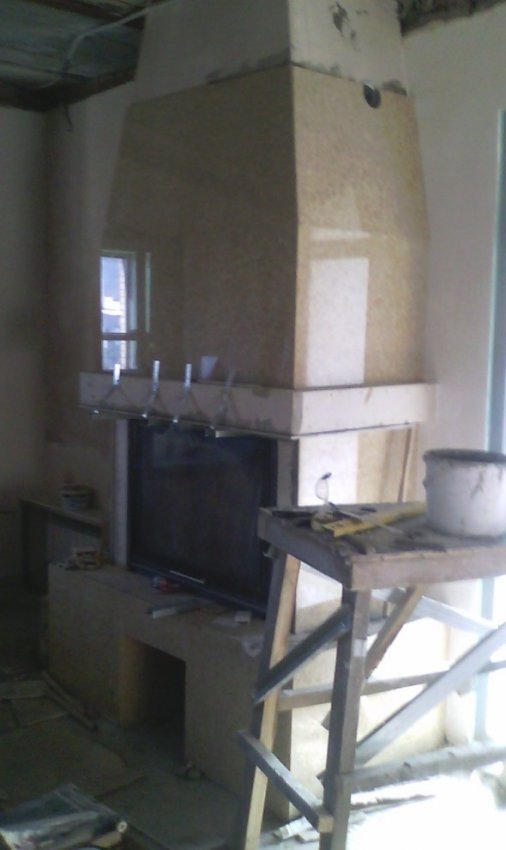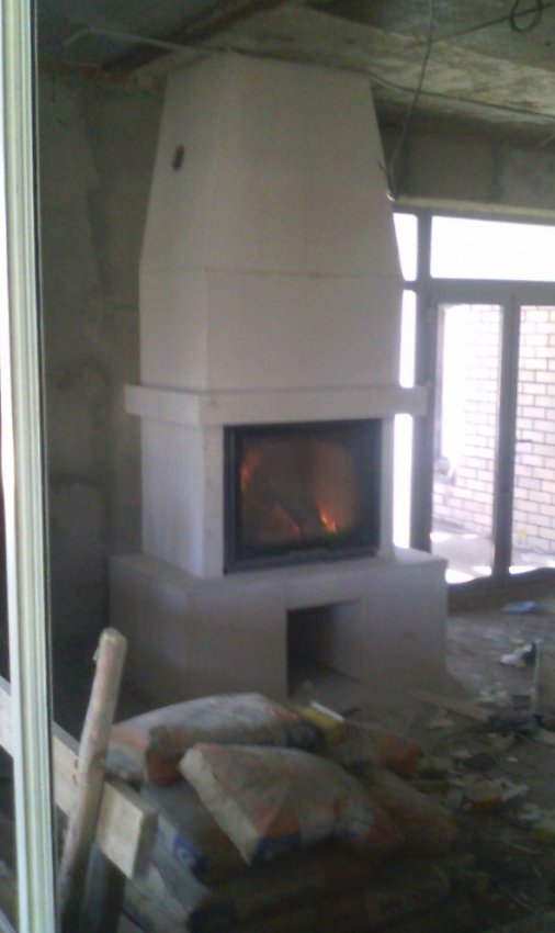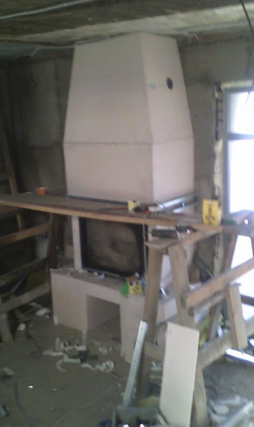 Доброе время суток! Представляю вам камин, который сегодня закончил (практически). Извиняюсь за качество фото, все фото делались на телефон, да и с освещением на объекте туго.