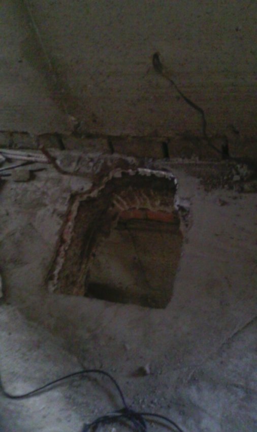 Делаем технологическое отверстие в перекрытие этажей под дымоход и конвекционные каналы( для обогрева второго этажа)