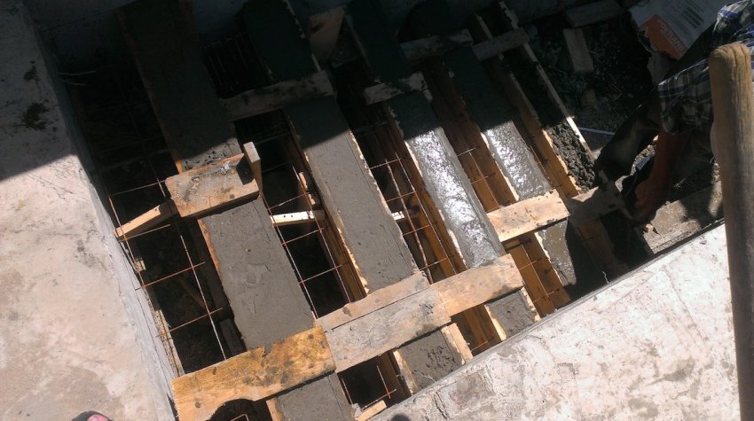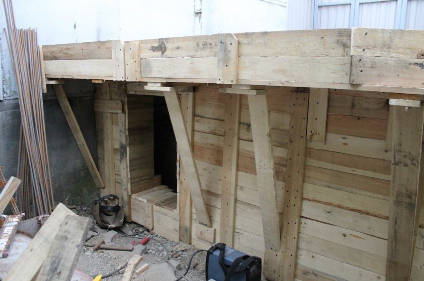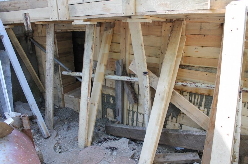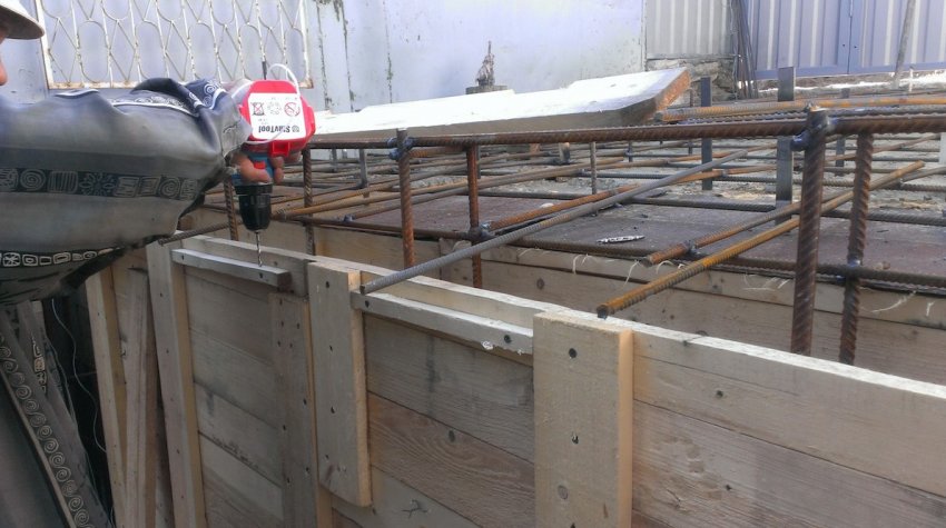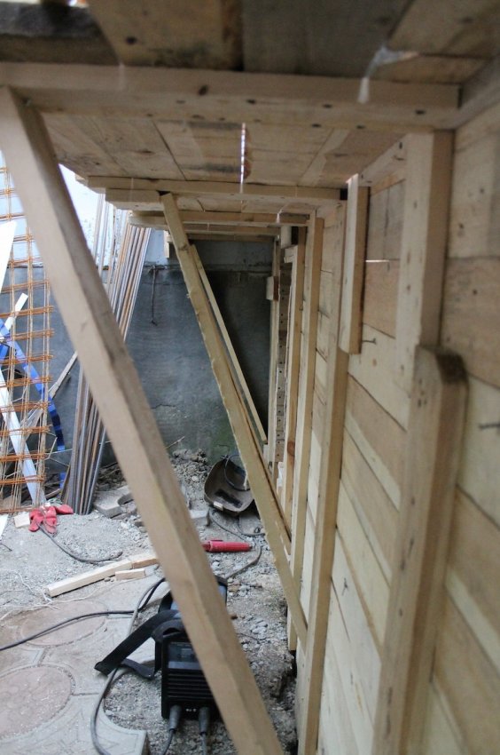 Доски сверху, чтобы по ним ходить при заливке бетона