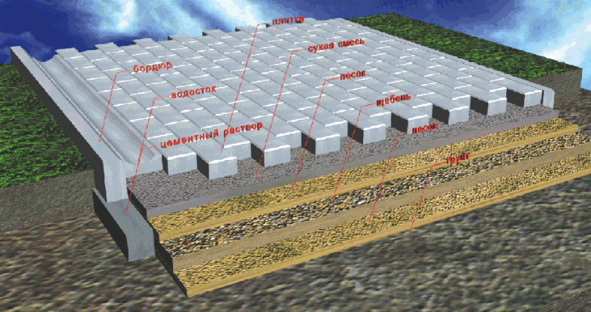 участка является подготовка площадки под будущие работы. Поскольку основой качественной, долговечной и красивой укладки материала является эффективно и тщательно подготовленное и спланированное для него основание. В большинстве вариантов укладки, основанием площадки служит песчаная и гравийная подушка, отсев, иногда используется основание из бетона (но очень и очень редко). Расположение площадки и ее конструкция должны быть хорошо спланированы, а именно должен быть строго соблюден уровень и предусмотрены стоки для воды.