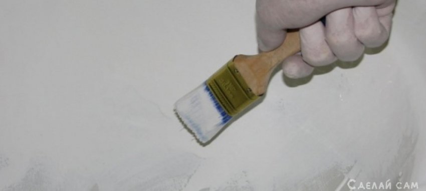 Далее наносим слой грунтовки. После высыхания наносим второй слой грунтовки. На подготовленную поверхность наносим полиуретановую краску, устойчивую к влаге. Примерно через 12 часов наносим второй слой краски. Краску можно наносить пистолетом под давлением или обычным валиком. При покраске валиком необходимо защитить зону, которую не надо красить, в непосредственной близости от ванны, например, малярным скотчем.