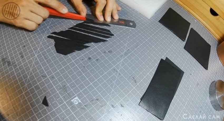 Хочу показать вам интересный способ декорирования простых изделий, из натуральной кожи. Плетение из тонких полосок кожи. Шаблон делаем из картона.