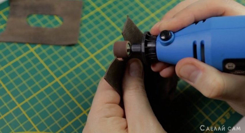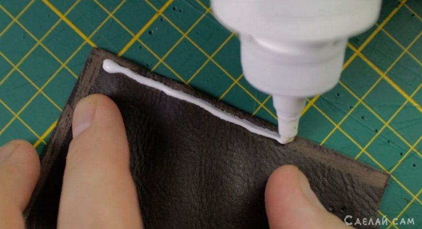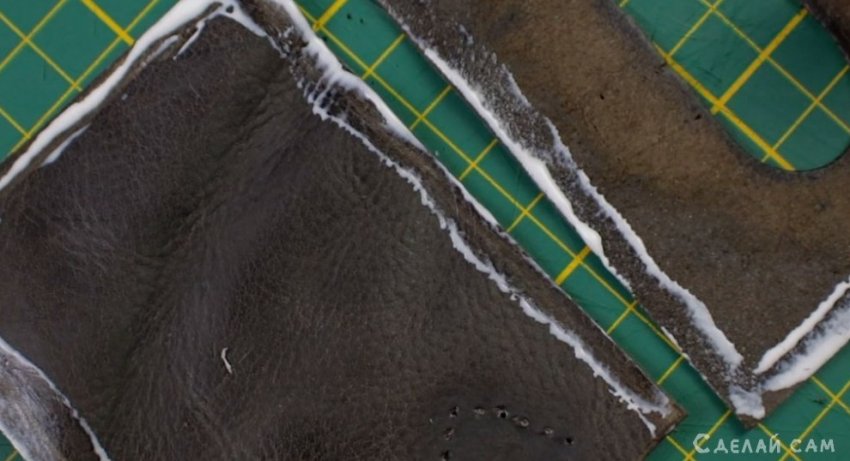 Стачиваем немного кожи в местах соединения. После чего, проклеиваем наше изделие.