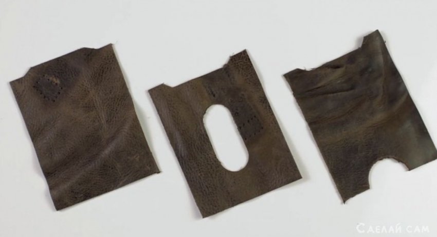 Вырезаем нужные нам детали из чистых кусков кожи.