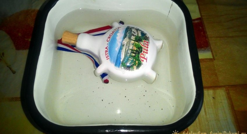 1. Наливаю в таз столько воды, чтобы она покрывала лежащие в нем сувениры (покажу на примере оного сувенира).
