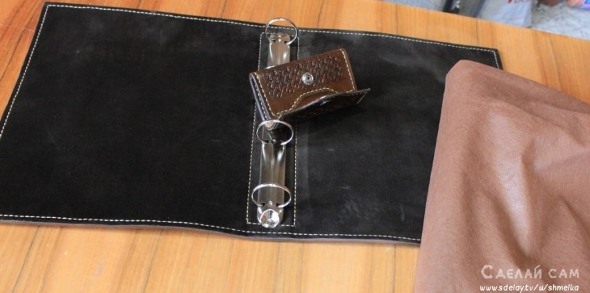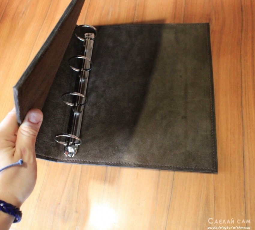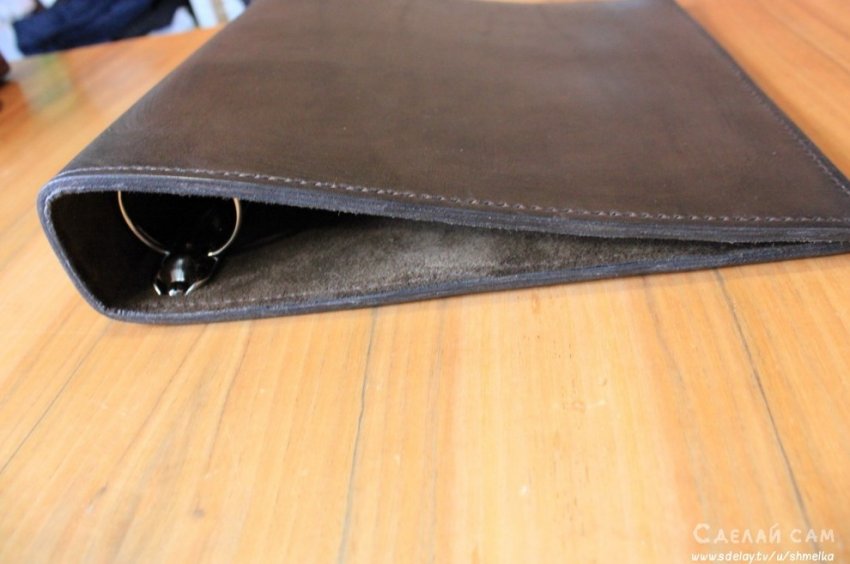 Нужна была коричневого цвета папка из толстой (4-5 мм) кожи, без каких-либо декоративных элементов, чтобы с обратной стороны кожа была с мягким ворсом. Вот собственно и все.