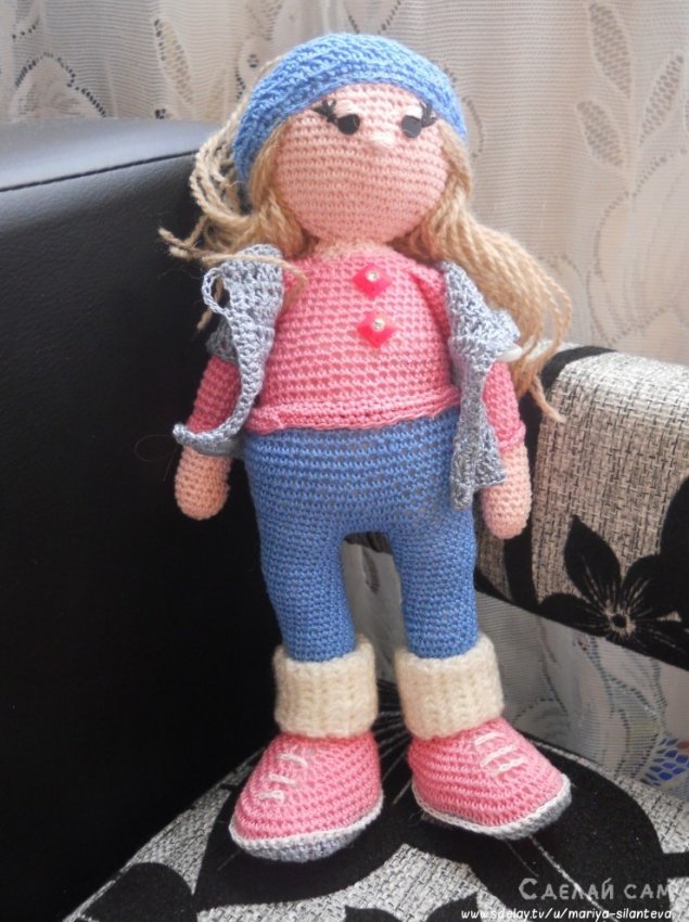 Данная кукла связанна крючком из ниток Ирис, наполнитель - синтепух. А это значит не будет вызывать аллергию у ребёнка.Высота 30см. Снимается только жилет. Куклу можно стирать при 30 градусах и она быстро сохнет. Волосы распущены,но при желании очень легко заплетаются косички. Снимается только жилетка! Волосы можно заплетать в косы.Кукла подлежит стирке (при 30 градусах!) и она очень быстро сохнет. Со Стешой ребёнку будет сладко спаться!!!.
