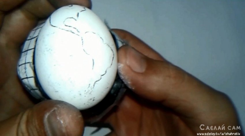 А затем выпилил размеченный лепесток и так по всей площади яйца.