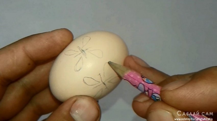 Просушив скорлупу, я принялся наносить узоры простым карандашом.
