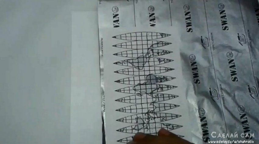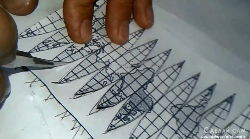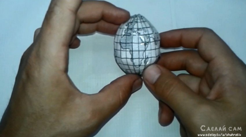 В поисковике браузера ввел «развертка глобуса», выбрав приемлемый для меня результат, скачал и по размерам яйца, распечатал развертку глобуса.