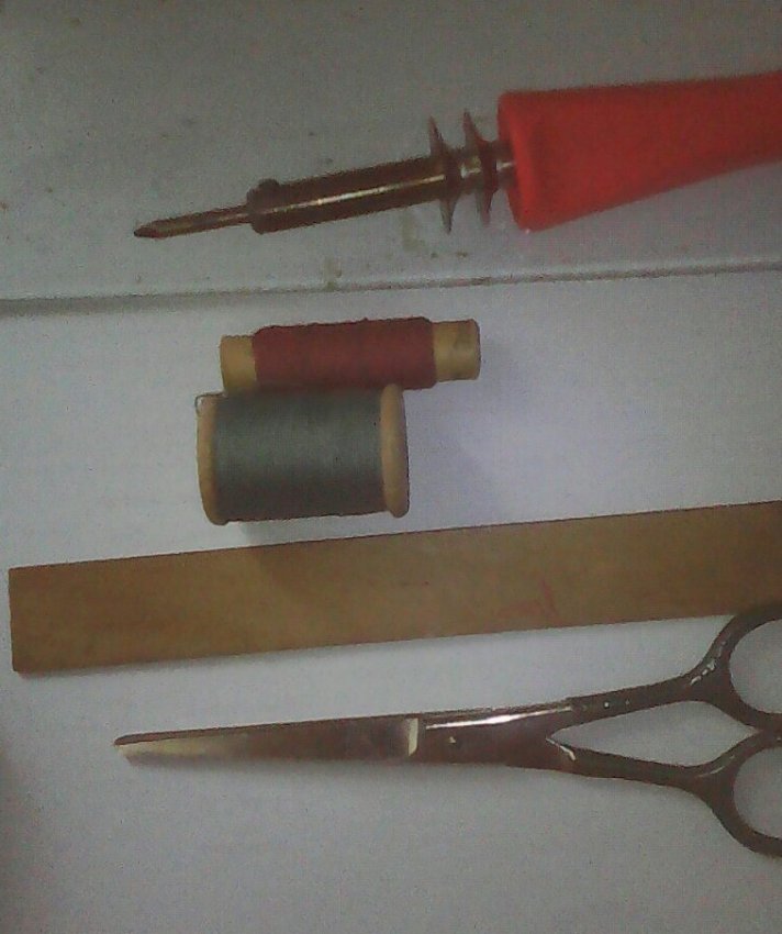 Инструменты понадобятся простые: выжигатель, нитки зеленые и красные, линейка деревянная, ножницы, порволока, толстая швейная иглаКартонные выкройки цветков: круг диаметром 6см, квадрат со тороной 5см, каплевидный листочек.