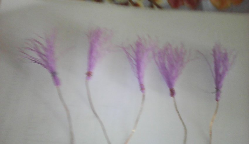Изготовляем кисточки по числу цветов - 5. длина провлоки в готовом состоянии 7 -8 см