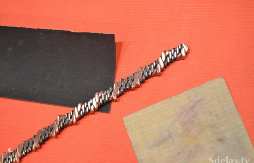 Берем наждачную бумагу и полируем наш браслет до блеска. На солнце он должен сверкать и блестеть. Этим, мы придадим браслету более красивый вид.
