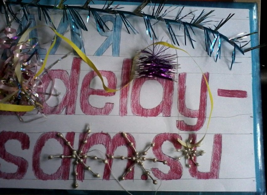 Но это дело легко поправимо с помощью блестящих красок. Большие снежинки я покрасила серебристым лаком для ногтей, а маленькие – блестящей спрей-краской.