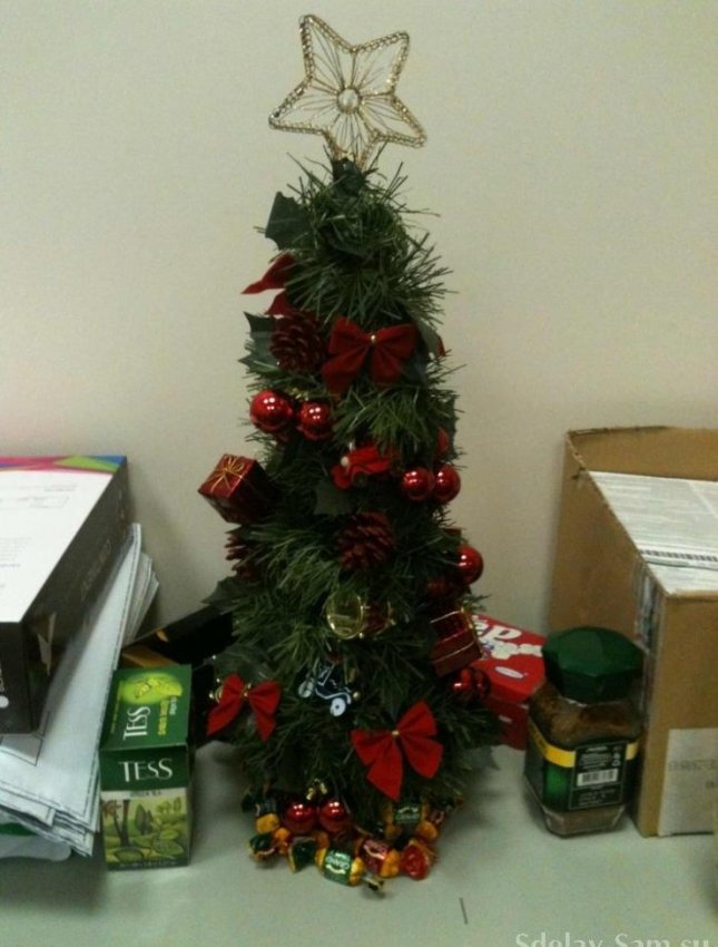 Эта елочка была сделана за один вечер и стала настоящим украшением в нашем офисе.