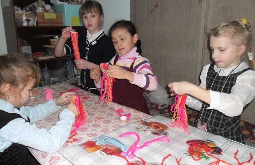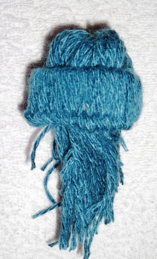 Оставшиеся после "стрижки" хвостики пряжи прячем внутрь шапочки,придавая тем самым ей объём да и вообще,зачем что-то выбрасывать,если можно использовать с пользой. Или я не права?)) И завершающий момент : украшаем шапочку всем,чем только пожелается и найдётся у вас в доме.