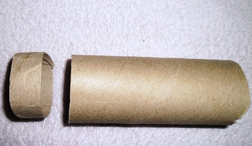 Для этого нам потребуется картонный рулон от бумажных полотенец. Отрезаем от него полоску,шириной 1-2 см,в итоге имеем кольцо.