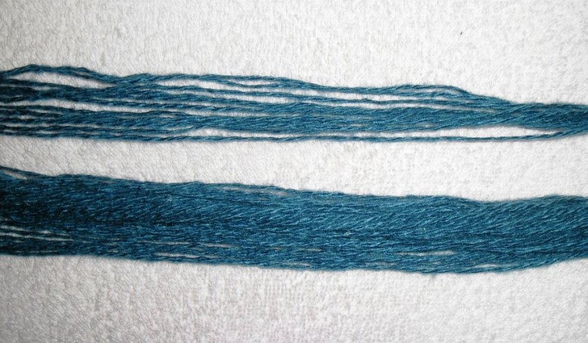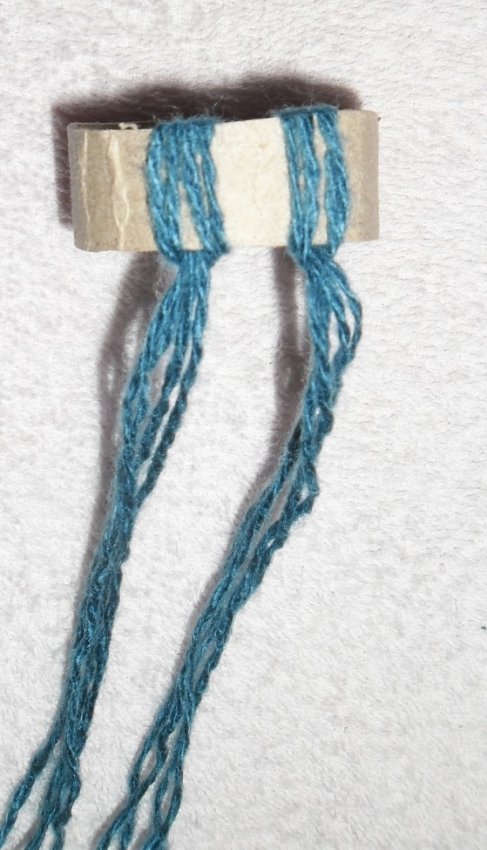 Далее нарезаем пряжу,воооооот такими полосками, см 30 ,которые складываем пополам.