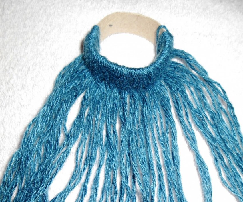 ну вот,полдела сделано,остаётся самое интересное: выворачиваем "наизнанку" нашу медузу,т.е проталкиваем внутрь кольца концы пряжи. Примерно вот так: