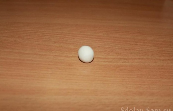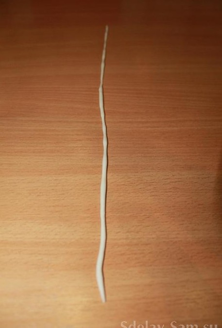Шаг 2. Берем небольшой кусочек полимерной глины (как показано на фото ниже) и раскатываем его в тонкую соломинку.