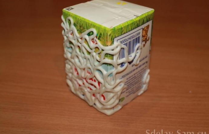 Здравствуйте! Буду рада поделиться с Вами идеей, как сделать красивую декоративную вазочку из полимерной глины. Шаг 1. Нам понадобиться: полимерная глина, латексный клей (можно клей ПВА), кисть, коробка из под сока или молока.