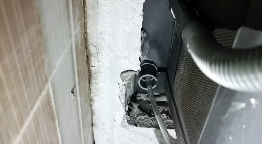Свободный конец трубки пропускаем через сборку из отрезка пластиковой трубы с наклеенным горлышком от емкости и двумя переходниками из ПВХ. Вновь закрепляем дозатор к горлышку от емкости. Откручиваем переходник с внутренней резьбой и заводим гибкую трубочку в отверстие на мойке.
