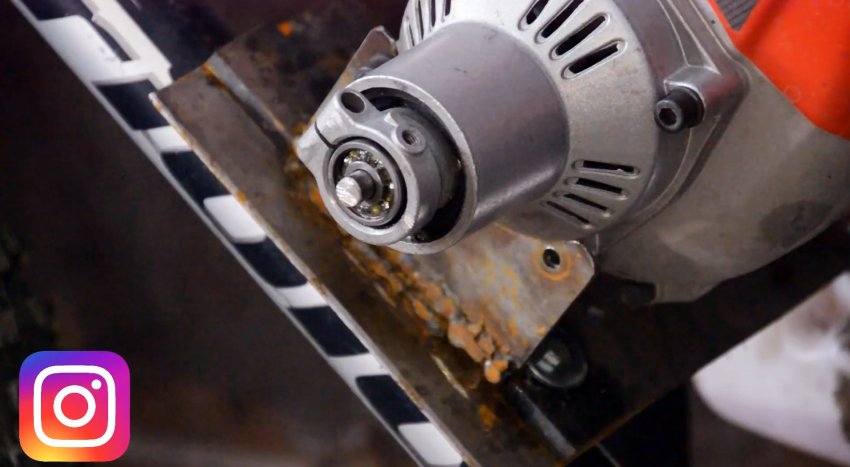 После этих действий основание под двигатель приобрело нужную прочность и жесткость. Устанавливаем на него мотор и крепим болтами во всех точках.
