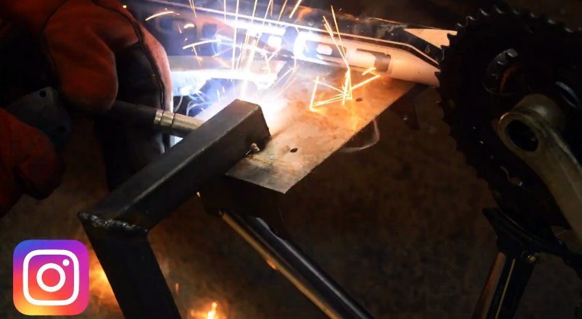 Новое основание прикручиваем двумя болтами к низу наклонной трубки рамы велосипеда. Отсоединяем корпус вариатора, вставляем в него вал со шлицами цангового патрона дрели или шуруповерта и, приварив его конец, возвращаем вариатор на место.