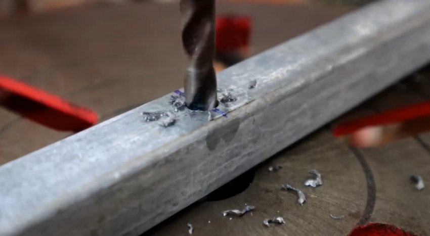 В центре всех линий автоматическим кернером выполняем керны и сверлим сквозные отверстия на сверлильном станке.