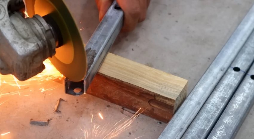 Торцы всех отрезков с отверстиями по краям скругляем болгаркой. Соединяем в 2 пары отрезки по 45 и 30 см с помощью болтов, вначале пропускаемых через отверстия отрезков по 45 см.