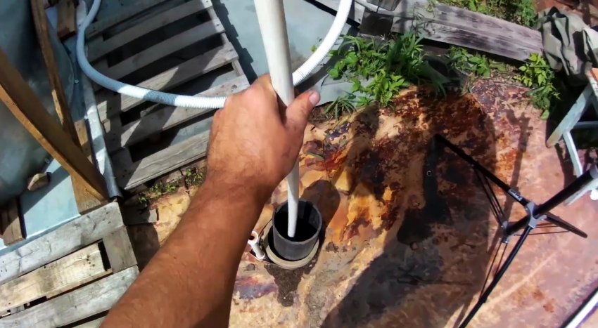 После завершения прочистки скважины, выкручиваем шурупы и используем трубу в качестве удлинителя поливочного шланга. Трубу нельзя держать под солнечными лучами, т. к. она станет со временем хрупкой.