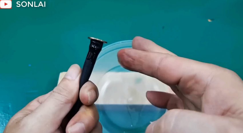 В резьбу части соединителя вкручиваем резьбовую часть лейки. Включаем воду и убеждаемся, что и в этом случае стык получился герметичным и достаточно прочным.