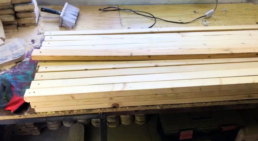 Лучше, чтобы он был не более 2 см. Когда все брусы будут прикручены, их можно обработать лаком, олифой или простой краской.
