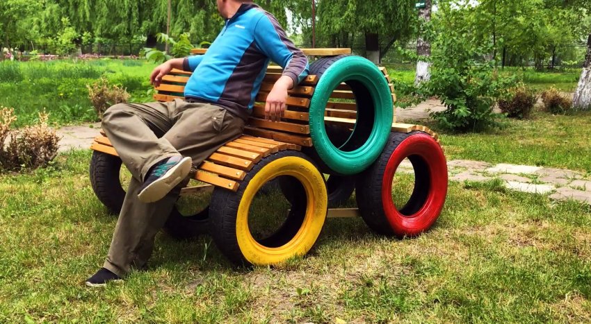 Невероятно полезная и бюджетная идея для сада: чудесная лавочка из старых покрышек - «Сделай сам»
