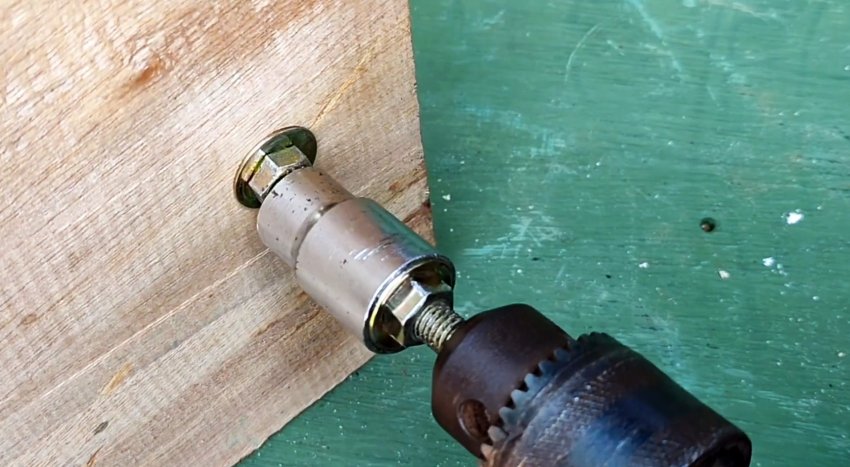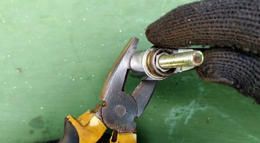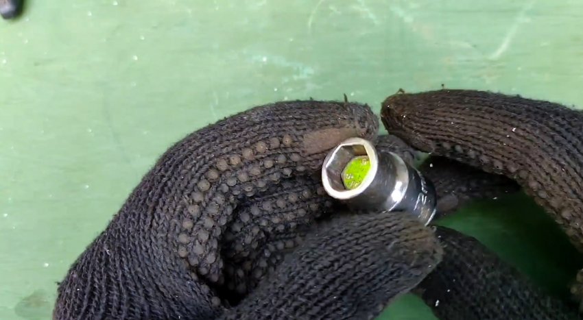 Главное в этом деле – изготовить оснастку из болта и слесарной головки. При этом в головке должна быть сквозное отверстие. Ещё нужен длинный болт под размер головки. Чтобы закрепить болт с головкой понадобится шайба и гайка.