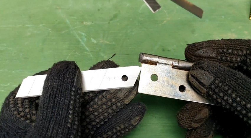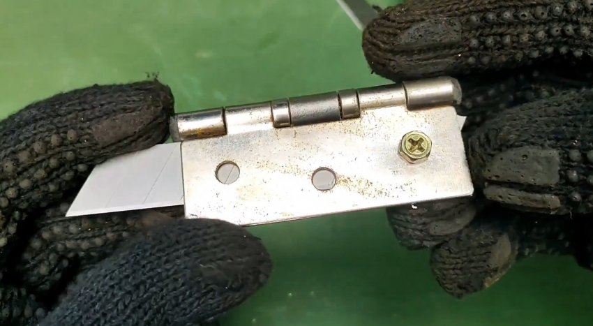Самодельный резак из дверной петли и запасного лезвия канцелярского ножа