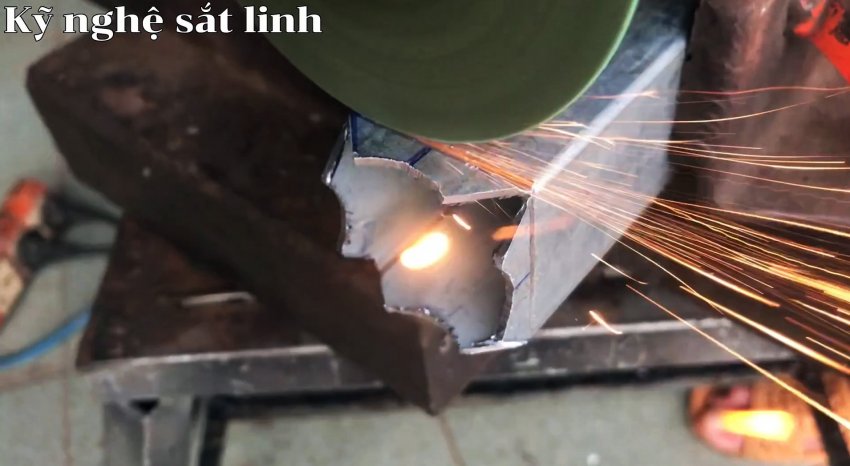 По основаниям оставшихся фрагментов снаружи выполняем болгаркой неглубокие направляющие прорези для облегчения их сгиба внутрь под ударами молотка, пока все торцевые фрагменты не займут горизонтальное положение.