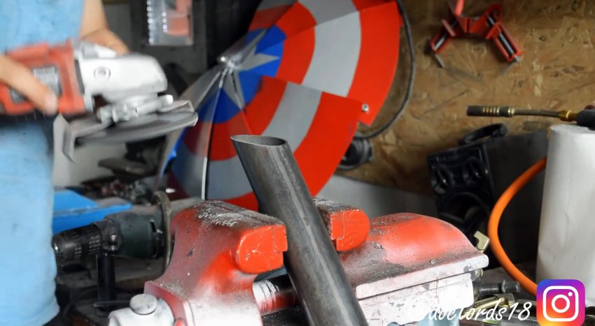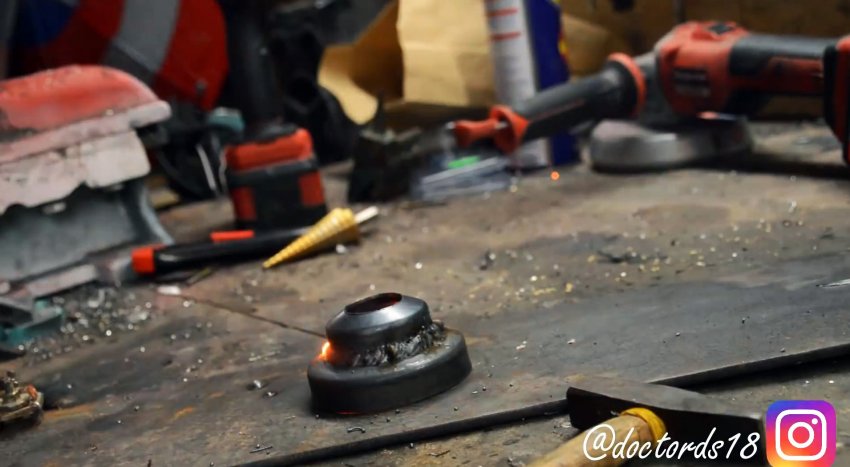 Меньшую заглушку кладем на отверстие большей и закрепляем сваркой. Зачищаем сварочный шов.