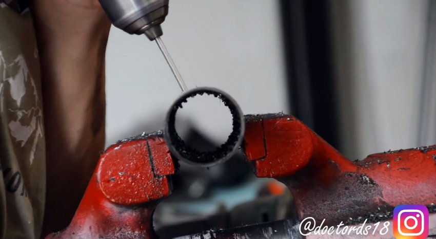 Всю цилиндрическую поверхность трубы малого диаметра между метками равномерно перфорируем с помощью сверления дрелью.