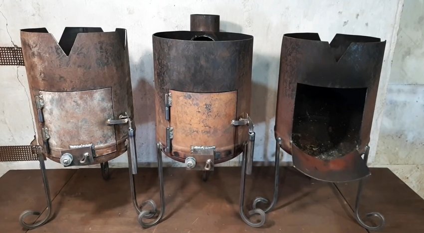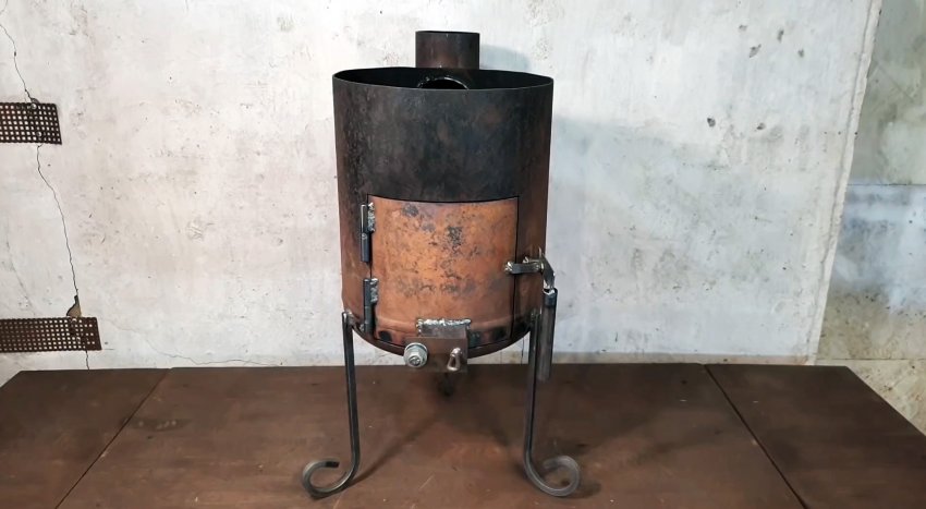 Самый удобный и выгодный тип такой печки имеет дверцу, регулируемое поддувало и дымовую трубу.