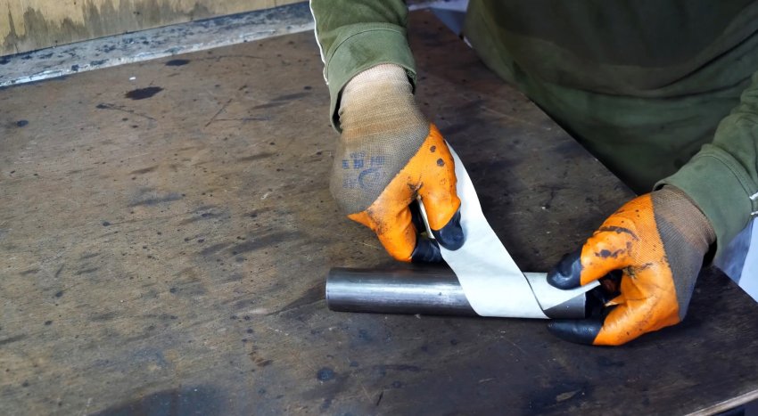 От круглой трубы заданного диаметра отрезаем кусок нужной длины и подравниваем торцы. Наматываем на трубу бумажный скотч по спирали, оставляя небольшой зазор между соседними витками.
