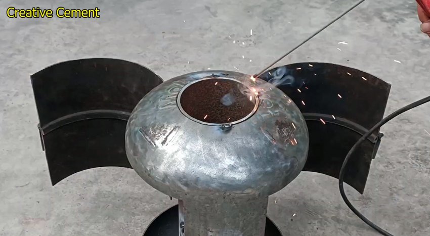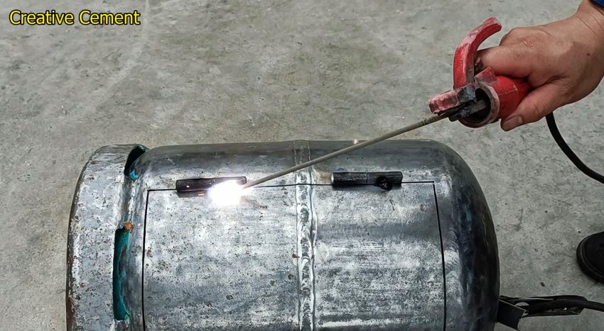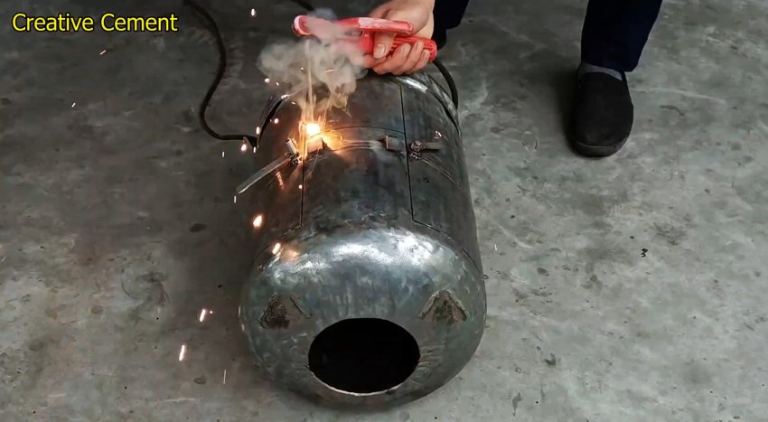 Затем свариваем их. Также нужно подварить трубы к стенкам баллона.