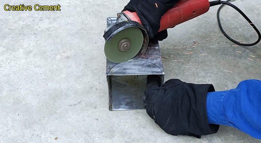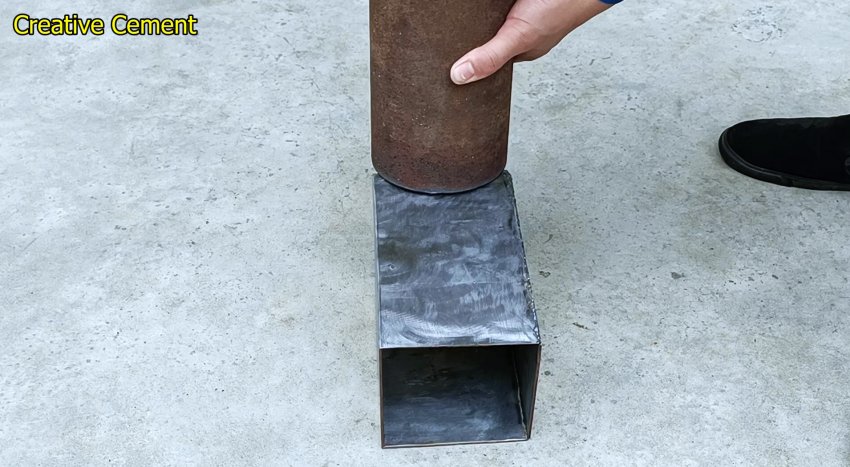 Теперь из листовой стали свариваем профильную трубу сечением 125х125 мм. С торца обрезаем ее под стыковку под прямым углом с круглой трубой.