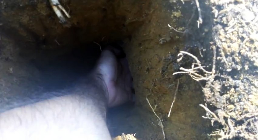 Затем у самого дна скважины нужно соединить небольшим тоннелем. Его можно просто прорыть рукой, или пробить ножом.