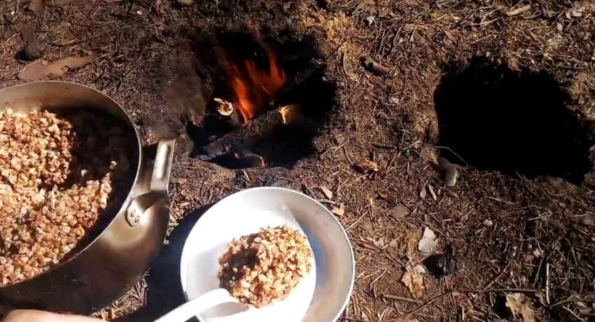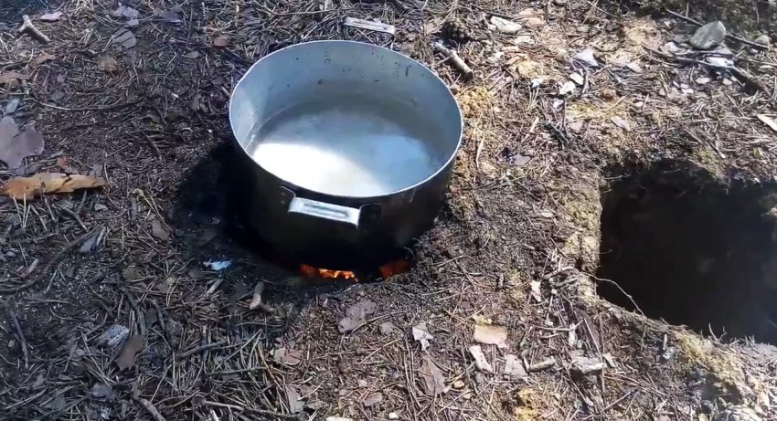 Над скважиной с костром можно поставить котелок, и быстро приготовить пищу или чай.