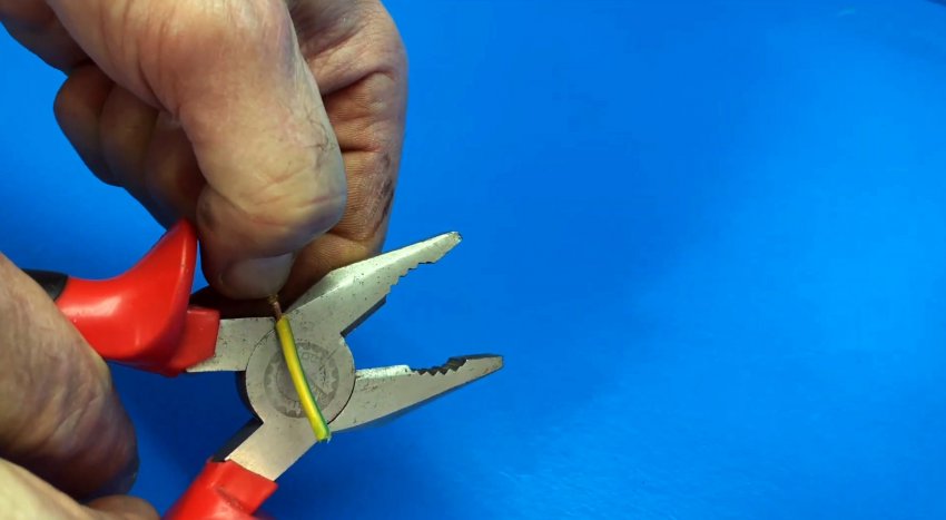 Третью руку для выполнения пайки можно сделать, если стянуть ручки плоскогубцев резиночкой.