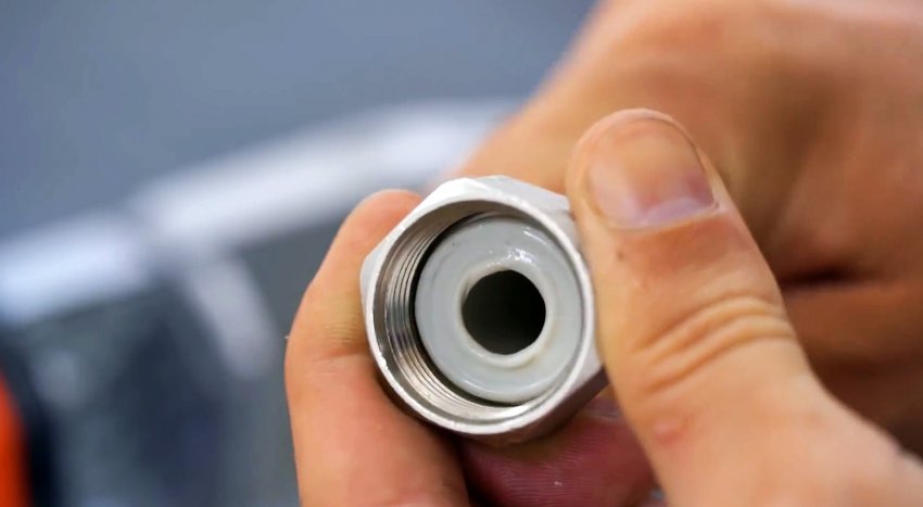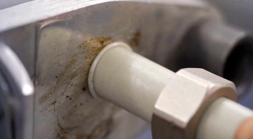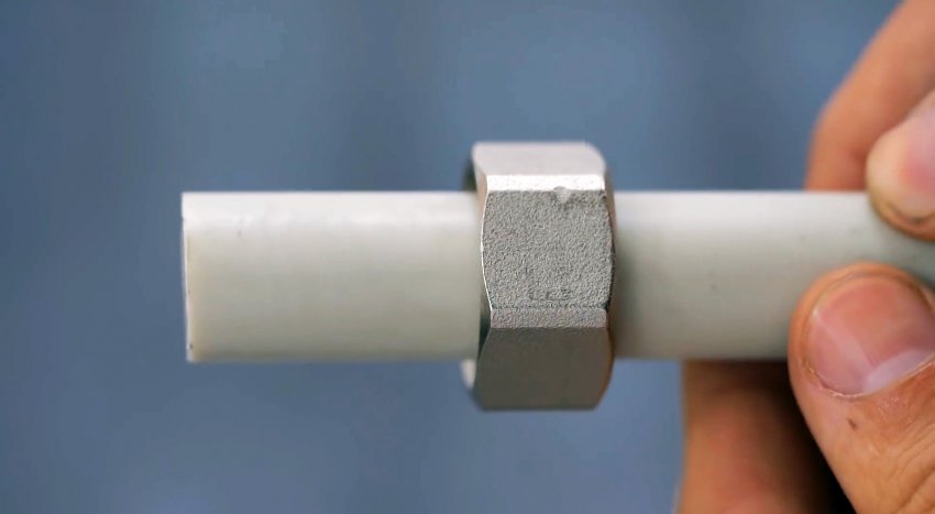 Чтобы поставить на ПП трубу накидную гайку, греем торец первой о плоскость паяльника. Ждем легкого оплавления, и затем отрываем трубу. В итоге на краю получается юбочка, в которую прекрасно упирается гайка.